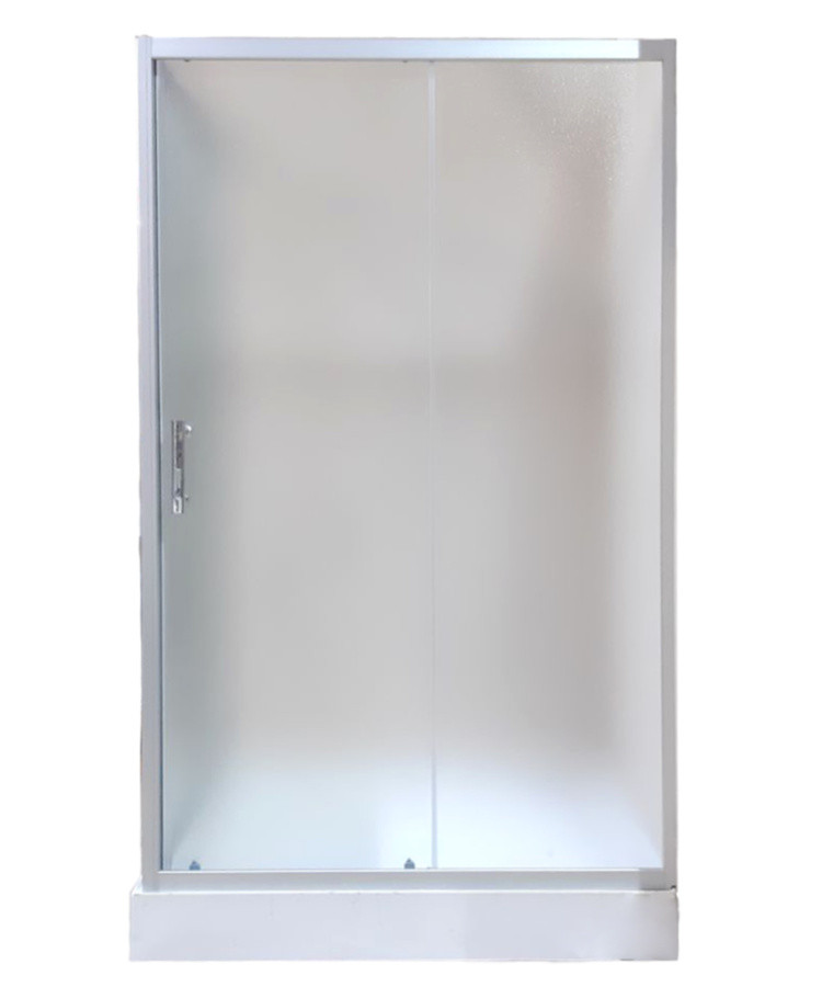 Дверцята кабіни виконані з матового скла, що надає вишуканості та витонченості. Дверцята відкриваються розсувним механізмом, що дозволяє використовувати кабіну в умовах, коли відкривання стулки не зручне. Для зручності користувачів кабіна оснащена дрібнокутовим прямокутним піддоном.